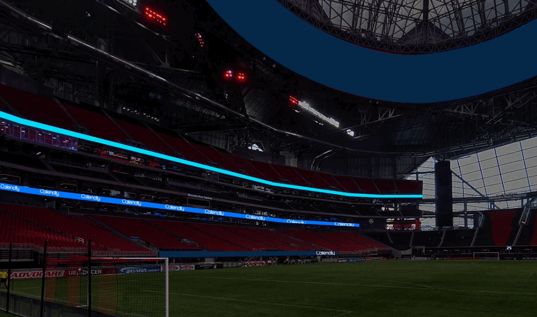 One of the most enjoyable projects I’ve ever worked on was event graphics for software company Calendly inside the Mercedes-Benz Stadium in Atlanta, Georgia. Calendly had a Summer Retreat entitled Come Together and they wanted their branding to fill screens displayed 360 degrees around the stadium.